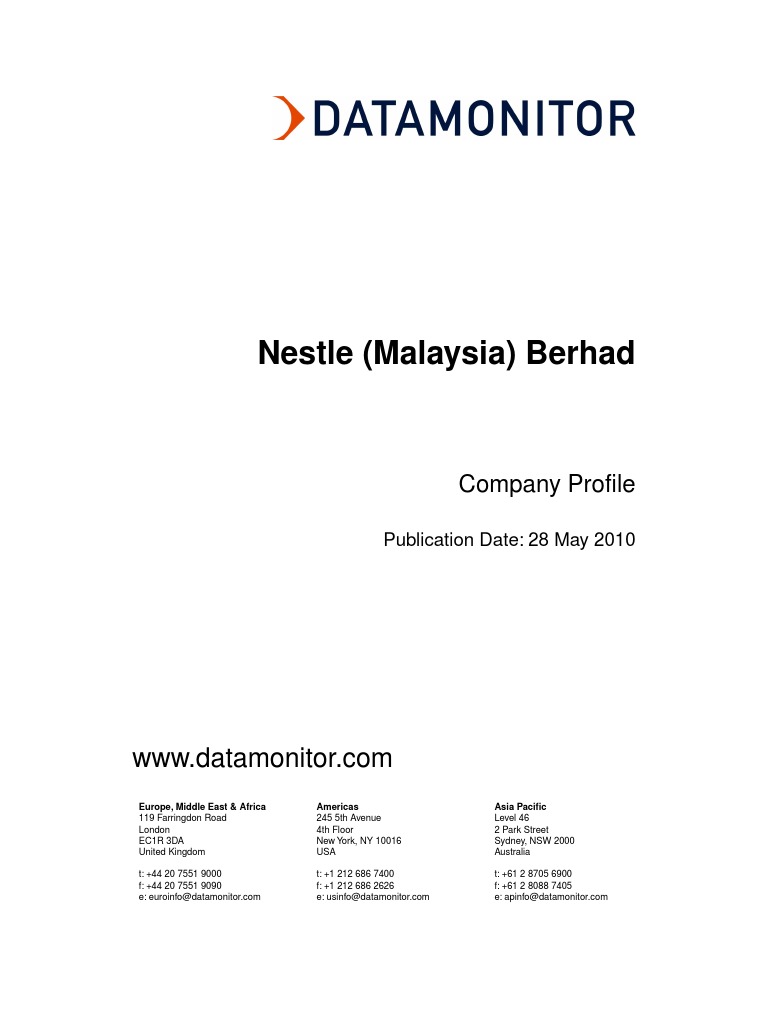 3.1 lokasi kajian syarikat nestle berhad ini ditubuhkan di malaysia pada tahun 1912 sebagai anglo swiss condensed milk co di pulau pinang mengenalpasti aktiviti perniagaan yang dijalankan oleh syarikat nestle malaysia berhad. Today, nestlé bhd has delivered major windfall returns to shareholders. Nestlé (malaysia) berhad manufactures and sells food and beverage products in malaysia and internationally. Tm mempunyai sebuah jumlah syarikat terbanyak dalam kawalan di dalam dan di luar malaysia. Its subsidiaries include nestle products sdn. Its subsidiaries include nestle products sdn. The existing company that has decided on is nestle (malaysia) berhad. The company, through its subsidiaries, markets and sells powdered milk and drinks, liquid milk and juices, instant coffee, and instant noodles. The company's segments include food and beverages, and others, which include nutrition and nestle professional. Maxine lim media relations manager tel: Nestlé (malaysia) berhad is a multinational food manufacturing and marketing company. In fact, over nine million 1. Food & beverages, and others segments.